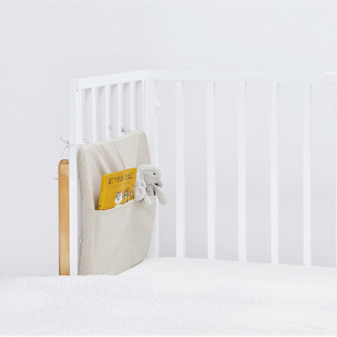 頭や足元にくる短手の柵に取り付けできる収納ポケット付きベッドガードです。